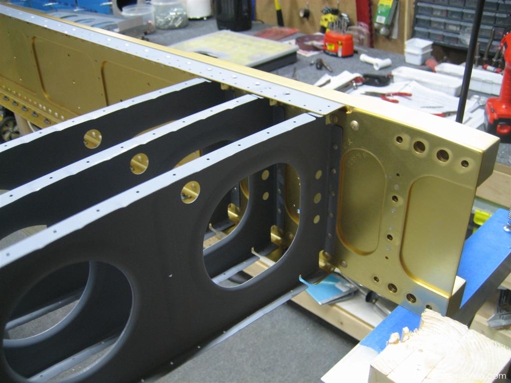 From here on, I won’t be able to peel the skin back from the bottom anymore, but I should be able to reach in through the inboard rib, where the lightening holes are now big enough for my huge biceps.