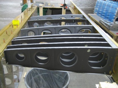 After rivting the front spar and ribs to the skin, here’s an interior picture.