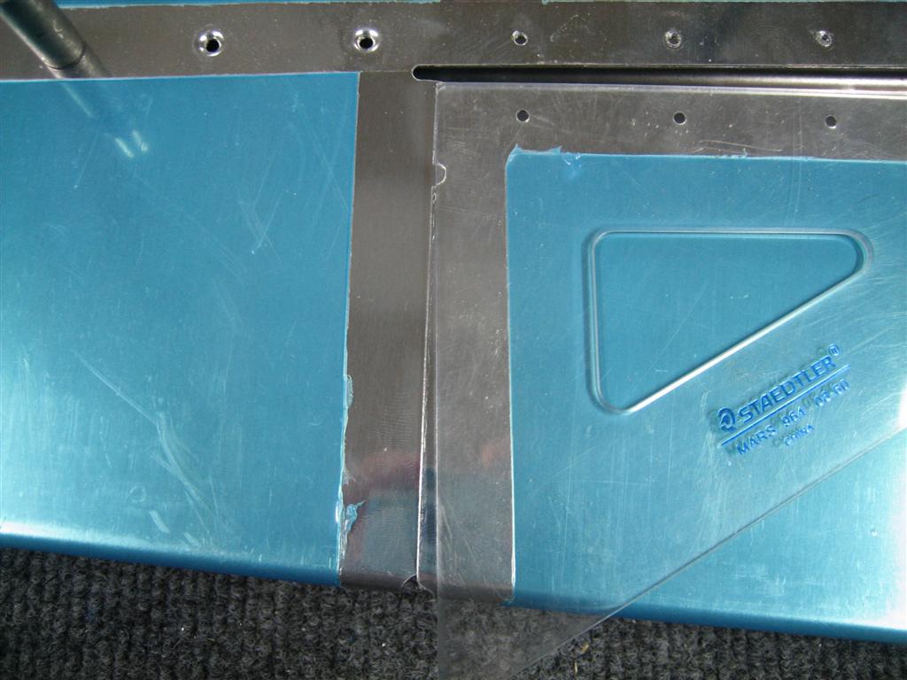 You can see I clecoed it in place and drew a line where the two overlap; I'll use this as my primer line.