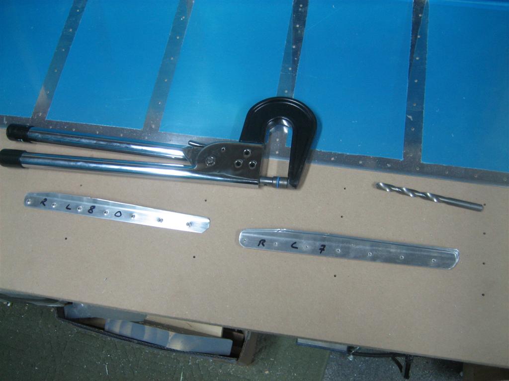 First thing, I laid the stiffeners in place without rivets just to see where I needed to protect the rib lines with electrical tape.